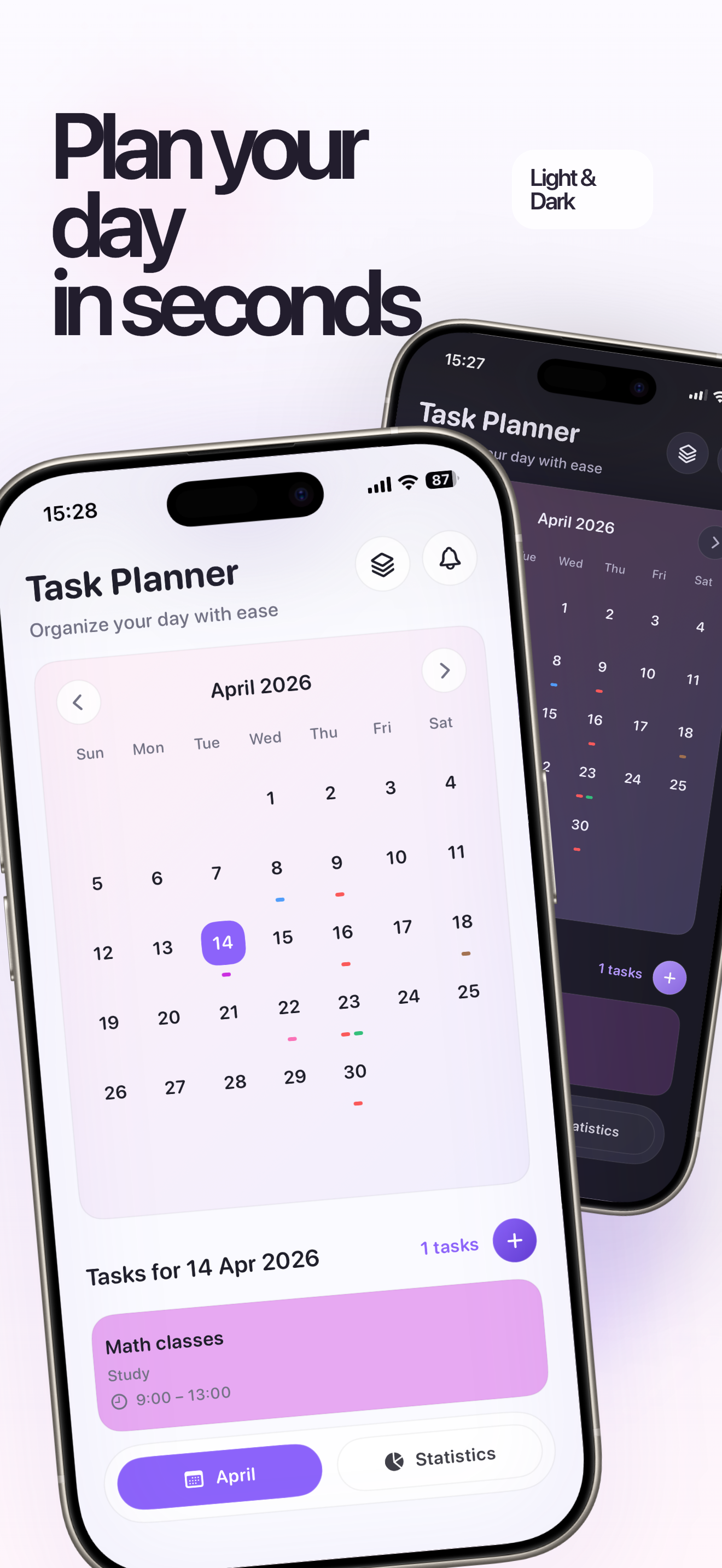 Task Planner is a clean iPhone app for tasks, reminders, recurring plans, categories, and beautifully simple statistics — designed to feel light, calm, and fast every day.